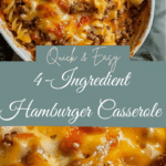 This 4-Ingredient Hamburger Casserole is a quick and comforting dish made with pasta, ground beef, tomato soup, and cheese. It’s hearty, budget-friendly, and perfect for busy weeknights when you need a satisfying meal with minimal effort.