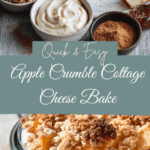 This Apple Crumble Cottage Cheese Bake came to life one chilly afternoon when I was craving something sweet but wholesome. With apples on the counter and cottage cheese in the fridge, I blended the two into a creamy, spiced dessert that’s now a family favorite. It’s layered like a trifle—cheesecake base, caramelized apples, oat crumble—and ready in no time. Whether I serve it in mason jars or one big dish, this fall treat is cozy, satisfying, and secretly packed with protein. Apple Crumble Cottage Cheese Bake