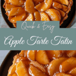 Classic French Apple Tarte Tatin with caramelized apples cooked in butter and sugar, topped with pastry, baked, and inverted for a stunning dessert.