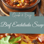 This hearty Beef Enchilada Soup is packed with ground beef, beans, corn, green chilies, and bold enchilada flavors. Made easily in a slow cooker, it’s a cozy Tex-Mex inspired dish finished with tortillas and customizable toppings.