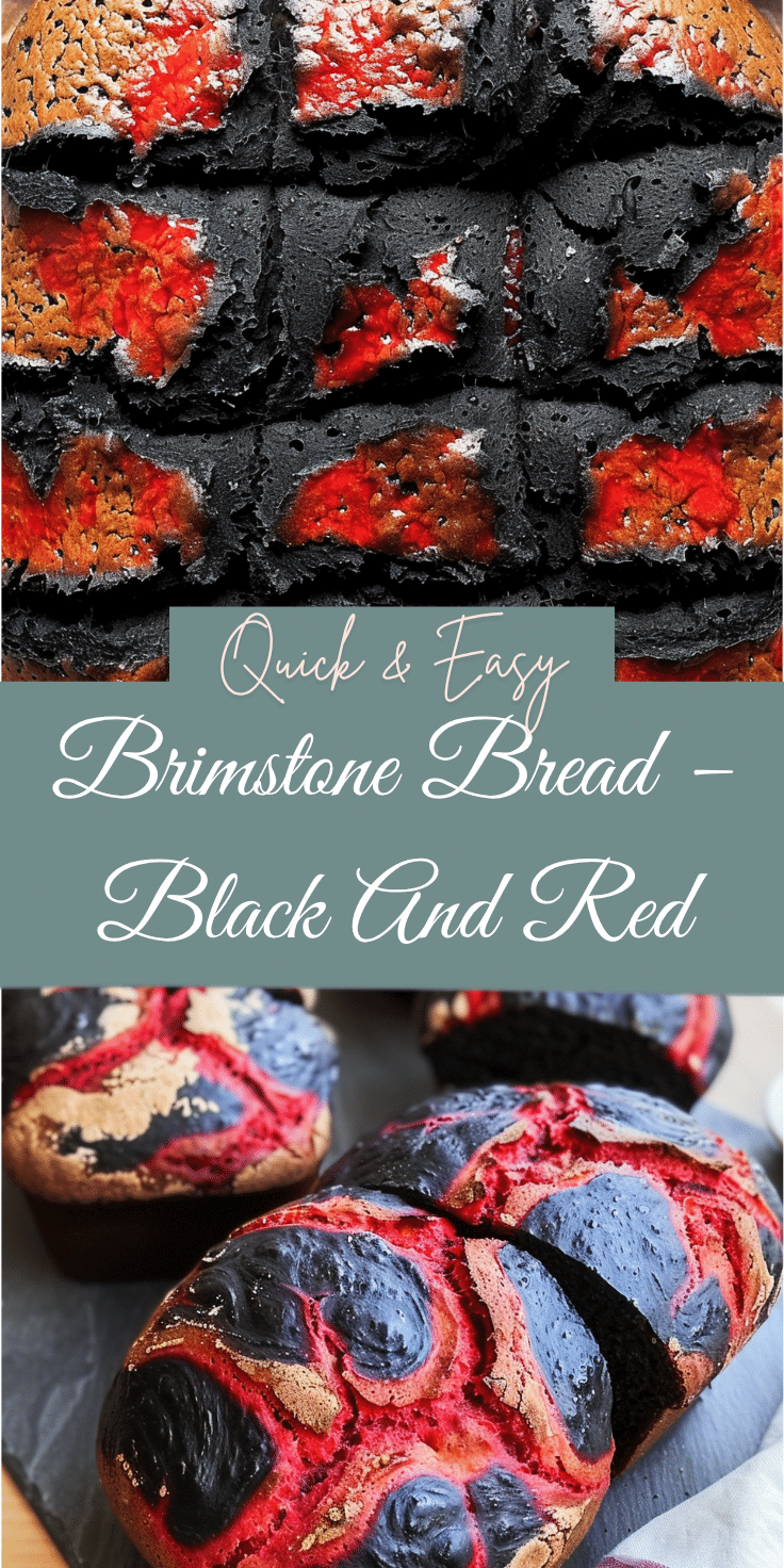 Brimstone Bread – Black and Red is one of my favorite ways to bring excitement to the dinner table. The color makes a bold statement, while the flavor and texture keep everyone coming back for more. Whether I’m baking it for a themed event or simply to impress guests, this bread never disappoints. It’s a simple, fun recipe that turns everyday baking into something spectacular.