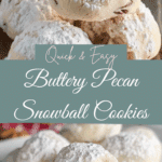 These Buttery Pecan Snowball Cookies are delicate, buttery, and packed with finely chopped pecans. Rolled twice in powdered sugar for a festive snowball look, they melt in your mouth and make a perfect holiday treat or nostalgic sweet bite.