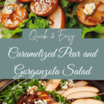 This Caramelized Pear and Gorgonzola Salad is a celebration of sweet and savory flavors. I love how the warm, tender pears pair beautifully with creamy Gorgonzola and crunchy toasted walnuts. All of this goodness sits on a bed of fresh mixed greens and is drizzled with a rich balsamic vinaigrette. It’s elegant enough for a dinner party, yet simple enough to enjoy on a quiet autumn evening at home.