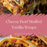 These cheesy beef stuffed tortilla wraps are a quick, satisfying meal packed with savory ground beef, melted cheese, and flavorful aromatics. Wrapped in warm tortillas and cooked until golden, they deliver a perfect balance of crispy exterior and gooey, savory filling. They’re great for busy weeknights, casual dinners, or even a fun handheld lunch. Cheesy Beef Stuffed Tortilla Wraps