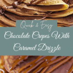 I love this recipe because it combines two of my favorite flavors—chocolate and caramel—in a simple yet elegant dish. The crepe batter comes together quickly, and the caramel drizzle adds a restaurant-quality finish that makes the presentation absolutely beautiful. The crepes can be filled with whipped cream, Nutella, or chocolate ganache, making them easy to customize depending on my mood or what I have on hand.