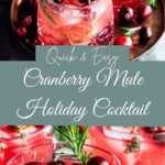 This Cranberry Mule Holiday Cocktail is a festive and refreshing drink featuring homemade cranberry sauce, fresh citrus juices, and fizzy ginger sparkle—perfect for Thanksgiving, Christmas, or holiday gatherings.