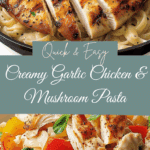 Creamy Garlic Chicken & Mushroom Pasta is a comforting and elegant one-skillet meal made with tender chicken, earthy mushrooms, and a rich garlic-parmesan cream sauce that coats every bite of pasta.