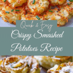 Crispy Smashed Potatoes are baby or small potatoes boiled until tender, gently smashed flat, then roasted at high heat until they’re golden‑crisp on the outside and soft and creamy on the inside. Seasoned with garlic, rosemary, Parmesan and parsley, they make an irresistible side dish.