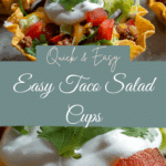 These Easy Taco Salad Cups are crispy wonton shells filled with seasoned meat, cheese, lettuce, guacamole, salsa, and sour cream. Perfect for parties or quick dinners, they’re customizable, fun to eat, and packed with bold Tex-Mex flavor.