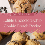 This edible chocolate chip cookie dough is a quick, sweet treat that captures the nostalgic flavor of classic cookie dough while being completely safe to eat raw. Made without eggs and with heat-treated flour, it has the same rich, buttery taste and soft texture you love from traditional cookie dough. Perfect for snacking by the spoonful, using as a dessert topping, or incorporating into other treats, this recipe is ready in minutes and requires no baking.