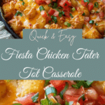This Fiesta Chicken Tater Tot Casserole is a cheesy, zesty, and comforting dinner featuring shredded chicken, black beans, salsa, melted cheese, and golden tater tots. It’s quick, crowd-pleasing, and perfect for busy weeknights or make-ahead meals.