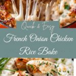 French Onion Chicken Rice Bake is a creamy, cheesy, one-dish casserole made with shredded chicken, rice, savory soups, and topped with crispy fried onions. It’s a cozy, crowd-pleasing meal perfect for family dinners or potlucks.
