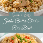 Garlic Butter Chicken Rice Bowl is a quick and comforting skillet meal featuring tender chicken tossed in a rich garlic butter sauce and served over warm rice—perfect for busy weeknights or meal prep.
