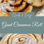 A giant, soft, and gooey cinnamon roll spiral filled with buttery cinnamon sugar and topped with a rich cream cheese frosting. Perfect for brunch, holidays, or any special morning treat.