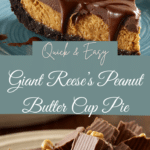 This Giant Reese’s Peanut Butter Cup Pie is a no‑bake dessert with a rich chocolate cookie crust and a creamy peanut butter filling, topped with a smooth chocolate layer. It tastes like a giant homemade Reese’s cup and is perfect for parties or anytime you want an indulgent treat.