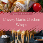 Golden, buttery, and irresistibly crispy on the outside with a warm, cheesy chicken filling inside, these cheesy garlic chicken wraps are the perfect quick meal. Packed with tender chicken, melty cheese, and rich garlic butter flavor, they make an easy lunch, dinner, or snack that feels indulgent but comes together quickly.