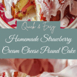 I always enjoy recipes that are easy to make but taste like they came from a professional bakery, and this one checks all the boxes. The combination of cream cheese and butter gives this pound cake a creamy texture I can’t get enough of. It’s sweet, but not overly so, and the strawberries add such a nice freshness. Whether I’m making it for a holiday, a spring get-together, or just a Sunday dessert, it’s a guaranteed crowd-pleaser. Plus, I love how beautiful it looks with that pink glaze drizzled over the top.