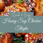Juicy, caramelised skin‑on, bone‑in chicken thighs marinated in a honey‑soy‑lemon‑ginger garlic glaze and oven‑roasted to sticky perfection — a sweet, savory, and effortless dinner.