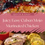 Juicy Cuban Mojo Marinated Chicken made with a bright citrus and garlic marinade of orange juice, lime juice, olive oil, and spices, resulting in tender, flavorful chicken perfect for roasting or grilling.