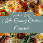 This keto creamy chicken casserole combines juicy chicken, mushrooms, and a rich Parmesan cream sauce, baked to golden perfection for a comforting low-carb meal.