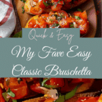 My Fave Easy Classic Bruschetta is a light, fresh, and flavorful appetizer made with juicy tomatoes, garlic, herbs, and parmesan on crisp toasted baguette slices. It’s the perfect summer snack or starter, ready in just 15 minutes.