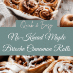 These No-Knead Maple Brioche Cinnamon Rolls are ultra-soft, buttery, and infused with maple flavor, topped with a luscious maple cream cheese frosting. Made with a no-knead brioche-style dough, they’re perfect for a make-ahead breakfast or special occasion brunch.
