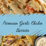 hésée Parmesan Garlic Chicken Burritos are loaded with tender, seasoned chicken, rich garlic butter flavor, and melty cheese all wrapped in a warm tortilla. Creamy, savory, and satisfying, they make a perfect weeknight dinner or hearty lunch that the whole family will enjoy.