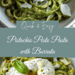 This Pistachio Pesto Pasta with Burrata is a fresh, indulgent take on a classic Italian favorite. Silky basil-pistachio pesto coats wide ribbons of pasta, while creamy burrata adds a luscious finishing touch that melts into every bite.