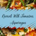 A vibrant and fresh ravioli dish featuring tender asparagus, juicy cherry tomatoes, and fragrant herbs in a light garlic-infused sauce—perfect for a quick and satisfying meal.
