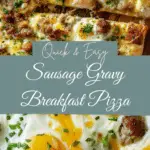 A hearty and comforting sausage gravy breakfast pizza with a flaky crescent roll crust, creamy sausage gravy, soft scrambled eggs, and melted cheddar cheese. Perfect for cozy mornings or weekend gatherings.