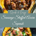 Sausage Stuffed Acorn Squash is a hearty fall‑dish where roasted acorn squash halves are filled with savory sausage, onions, garlic, breadcrumbs, herbs and Parmesan—rustic, nutritious and impressive enough for guests.