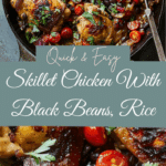 This skillet chicken recipe is a true one-pot meal that combines juicy chicken thighs with black beans, rice, tomatoes, and chiles. Inspired by Diana Henry and adapted by Margaux Laskey, the dish is cooked in a single 12-inch skillet, allowing the rice to soak up all the flavorful juices as the chicken roasts. It’s simple, comforting, and perfect for a satisfying dinner with minimal cleanup.