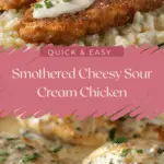 This smothered cheesy sour cream chicken is a rich and comforting dish that brings together tender chicken breasts with a creamy, savory sauce and a golden layer of melted cheese. It’s the kind of meal that feels indulgent yet simple enough for a weeknight dinner, making it a favorite for families and gatherings alike.