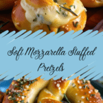 Golden on the outside, soft and fluffy on the inside, these Soft Mozzarella Stuffed Pretzels with Fresh Rosemary are the perfect savory treat. Each bite reveals warm, melted mozzarella wrapped in tender homemade pretzel dough, finished with a hint of fresh rosemary and a sprinkle of coarse salt. They are ideal as an appetizer, snack, or party favorite.