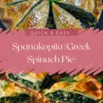 A classic Greek savory pie made with flaky phyllo pastry and a rich filling of spinach, herbs, and feta cheese, offering a perfect balance of crisp and creamy textures.