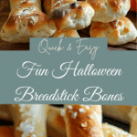 Spooky and Fun Halloween Breadstick Bones are shaped like bones and served with marinara ‘blood dip.’ They’re festive, kid-friendly, and perfect for Halloween parties or a seasonal snack.