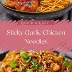These Sticky Garlic Chicken Noodles are a quick and satisfying high-protein meal featuring tender chicken pieces tossed with chewy noodles and coated in a glossy sweet-savory garlic sauce. The balance of honey, soy sauce, and fresh garlic creates a bold flavor that tastes just like your favorite takeout but is easy to make at home. Perfect for busy weeknights, this dish comes together in about 30 minutes and delivers a hearty, comforting meal packed with flavor and protein.