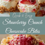 Strawberry Crunch Cheesecake Bites are no-bake mini desserts with a buttery graham cracker crust, creamy cheesecake filling, and fresh strawberries for a refreshing, bite-sized treat. Perfect for parties, snacks, or easy indulgence.