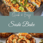 It’s called a sushi bake because it combines all the components of sushi—rice, seafood, and toppings—in a casserole form that’s baked instead of rolled. It’s a fun, easy alternative to traditional sushi.