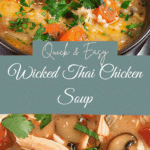Wicked Thai Chicken Soup blends creamy coconut milk, spicy red curry, and tender chicken with mushrooms, peppers, and rice in a rich, flavourful broth. It’s a comforting, Thai-inspired dish with adjustable heat and vibrant fresh herbs.